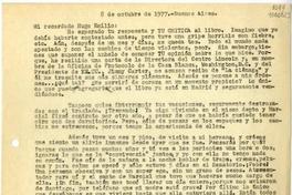 [Carta] 1977 octubre 8, Buenos Aires [a] Mi recordado Hugo Emilio [manuscrito] / Matilde [Ladrón de Guevara]. 1 hoja ; 28 cm. .