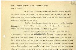 [Carta] 1977 octubre 18, Buenos Aires [a] hijita querida [manuscrito] / Matilde [Ladrón de Guevara]. 1 hoja ; 28 cm. .