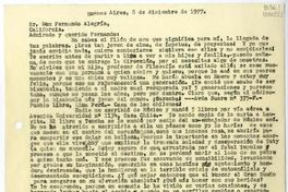 [Carta] 1977 diciembre 8, Buenos Aires [a] Señor Fernando Alegría, California [manuscrito] [Matilde Ladrón de Guevara].