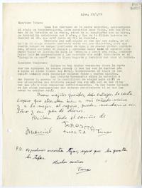[Carta] 1979 marzo 25, Lima [a] Queridos viejitos [manuscrito] / Marcial [Arredondo Guevara]. 1 hoja ; 28 cm. .