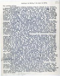 Carta de asuntos personales, comenta sus problemas de salud, los esfuerzos realizados para que Marcial vuelva a Chile y los deseos de vivir con su nieto Sebastián, hijo de Sybila.