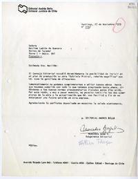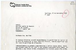 [Carta] 1979 noviembre 27, Santiago [a] Matilde Ladrón de Guevara [manuscrito] Editorial Andrés Bello.