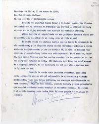 [Carta] 1980 enero 11, Santiago de Chile [a] Dr. Don Ernesto Malbec [manuscrito] / [Matilde Ladrón de Guevara]. 1 hoja ; 27 cm. .