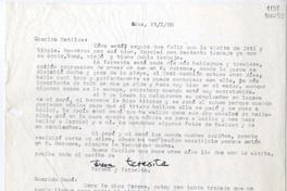 Habla de su trabajo y su intento de pedir la residencia en Perú. Además incluye carta de su nuera donde habla de su hija Teresita y de su estadía en Punta Hermosa.
