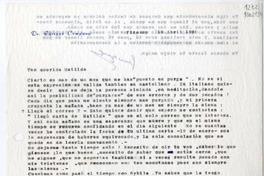 Pide a Matilde la contestación de su carta anterior, le pregunta por Sybila y habla de su relación con Kat, y también de su propia tristeza y soledad.