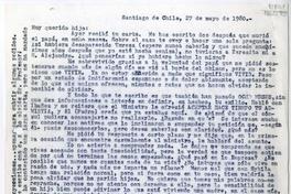 [Carta] 1980 mayo 27, Santiago de Chile [a] Muy querido hijo [manuscrito] Matilde [Ladrón de Guevara].