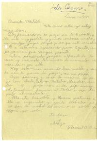 [Carta] 1980 julio 14, Lima [a] Querida Matilde [manuscrito] / Marcial A. A. R. 1 hoja ; 27 cm. .