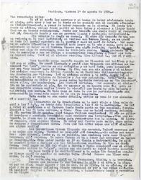 Habla de varios problemas de salud, de su trabajo, de grabar un libro de memorias, de su participación en una conferencia del Instituto Chileno-Norteamericano y sus esfuerzos con la Sociedad de Escritores, también de su plan para viajar a Lima.