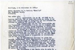 [Carta] 1980 diciembre 3, Santiago [a] Señor director de la revista "Ercilla", don Manfredo Mayol [manuscrito] Matilde Ladrón de Guevara de Arredondo.