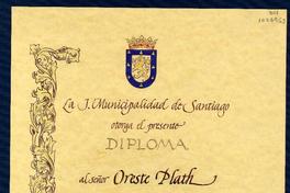 [Diploma] 1995 abril 28, Santiago, Chile [a] Oreste Plath [manuscrito] Municipalidad de Santiago (Chile).