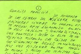 Toronto, Canada [a] Querida familia Carta, 1988 julio 1, [manuscrito] / Alfonso Alcalde. 1 hoja plegada en cuatro ; 28 x 21,5 cm. .