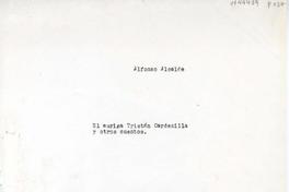 El auriga Tristán Cardenilla y otros cuentos : Antología [manuscrito] / Alfonso Alcalde. 50 hojas ; 28 x 21,5 cm. .