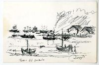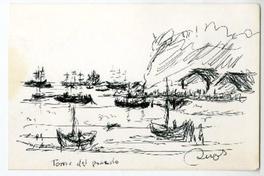 Dibujo de la playa de la ciudad de Tomé en el pasado, realizado por el escritor Alfonso Alcalde.