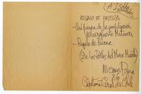 Santiago, Chile [a] Isolda Pradel Nota, 1986, [manuscrito]. Nicanor Parra. 1 hoja plegada ; 21,5 x 16 cm. .