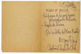 Santiago, Chile [a] Isolda Pradel Nota, 1986, [manuscrito]. Nicanor Parra.