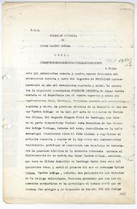 Posesión efectiva de Oscar Castro [manuscrito] / Conservación de Bienes Raíces y de Comercio de Santiago. 1 hoja ; 33 x 22 cm. .
