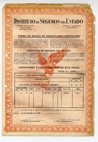 Póliza de seguro de desgravamen hipotecario [manuscrito] / Instituto de Seguros del Estado. 1 hoja ; 33 x 22 cm. .