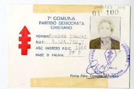 Credencial del partido democráta cristiano perteneciente a Isolda Pradel, de la 7° comuna de Base N°2.