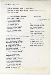 [Versos] [manuscrito] / Desiderio Lizana Droguett (Pedro Recio) ; transcripción. 1 hoja ; 32,5 x 21,7 cm. .