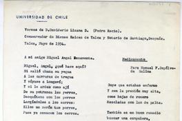 [Versos] [manuscrito] Desiderio Lizana Droguett (Pedro Recio) ; transcripción.