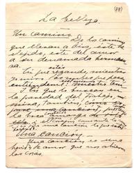 La belleza ; Un camino ; Una Canción; Fatalidad de la belleza ; Religión ; Sustento ; Apacentado [manuscrito] / Gabriela Mistral. [1920] 4 h. ; 20 cm. .