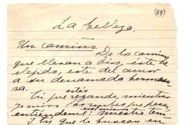 La belleza ; Un camino ; Una Canción; Fatalidad de la belleza ; Religión ; Sustento ; Apacentado [manuscrito] Gabriela Mistral.