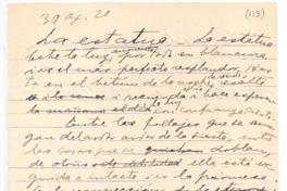 La estatua [manuscrito] / Gabriela Mistral. 1913 ago. 30 1 h. ; 21 cm. .