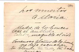 Los muertos ; A María [manuscrito] Gabriela Mistral.