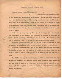 [Carta 1912 o 1913], Los Andes, Chile <a> Rubén Dario [manuscrito] / Gabriela Mistral ; transcripción de Raúl Silva Castro. 2 h. ; 22 x 28 cm. .