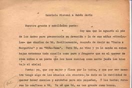 [Carta 1912 o 1913], Los Andes, Chile <a> Rubén Dario [manuscrito] Gabriela Mistral ; transcripción de Raúl Silva Castro.