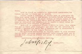 [Carta] 1915, Los Andes, Chile [a] María Letelier del Campo [manuscrito] Gabriela Mistral.