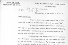 Correspondencia de la cónsul Lucila Godoy con el Ministro de RR.EE. de Chile sobre temas culturales.