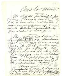 Para los niños. [manuscrito] / Gabriela Mistral. [1912?] 1 h. ; 22 cm. .