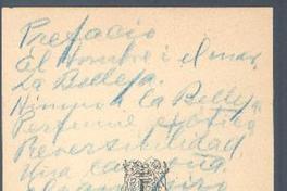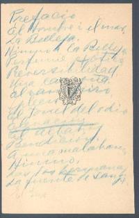Prefacio el hombre y el mar [manuscrito] / Gabriela Mistral. [193-?] 1 h. ; 11 x 17 cm. .