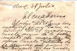 El cuaderno: [manuscrito] / Gabriela Mistral. 1918 jul. 31 1 h. ; 21 cm. .
