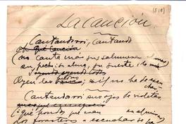 La canción [manuscrito] / Gabriela Mistral. [Entre 1912 y 1920] 1 h. ; 21 cm. .
