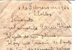 Llolleo, Chile [a] Manuela García Huidobro, Chile Carta, 1924 febrero 1, [manuscrito] María Luisa Fernández.