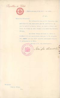 Texto original, mecanografiado. Con membrete de la República de Chile, Gobernación del Territorio Magallanes.