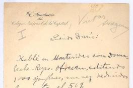 [Carta] 1894 Buenos Aires, Argentina [a] Rubén Darío [manuscrito] Victor Arreguine.