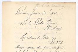 [Carta] 1894 jun. 30, Buenos Aires, Argentina [a] Rubén Darío [manuscrito] Eduardo de la Barra.