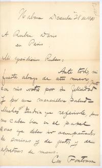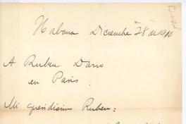 [Carta] 1910 dic. 28, La Habana, Cuba [a] Rubén Darío [manuscrito] Osvaldo Bazil.