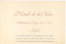 [Carta] 1925 ene. 25, Madrid, España [a] Alberto Ghiraldo [manuscrito] / Conde de las Navas. 1 h. ; 26 x 20 cm. .