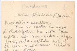 [Carta] [entre 1910 y 1916] [a] Rubén Darío [manuscrito] Bernardo G. de Candamo.