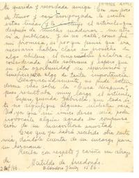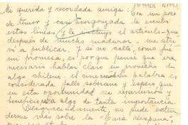 Entre otras cosas comenta que las elecciones presidenciales en Chile las ganó Gabriela González Videla, y le pide un juicio y prologo para los versos de Cármen Saval.