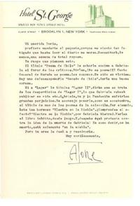 [Carta] [1957?], New York [a] Doris Dana, [New York] [manuscrito] / Hernán Díaz Arrieta (Alone). 1 h. ; 23 x 15 cm. .