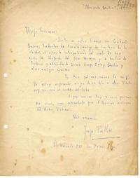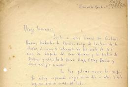 Lo saluda y le presenta a Gabriel Barra. Solicita que le envíe sus poemas para conocerlos, ya que son un estímulo para pasar el tiempo lluvioso.
