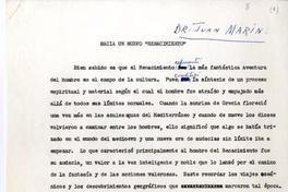Hacia un nuevo renacimiento [manuscrito] Juan Marín.