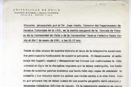 Discurso pronunciado durante la sesión inaugural de la Escuela Internacional de Verano. Integración de los países americanos.