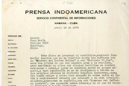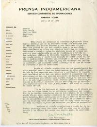 Texto original mecanografiado, firmado. Con membrete "Prensa Indoamericana".