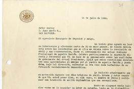 [Carta] 1944 julio 14, Santiago, Chile [a] Juan Marín [manuscrito] Juan Antonio Ríos.